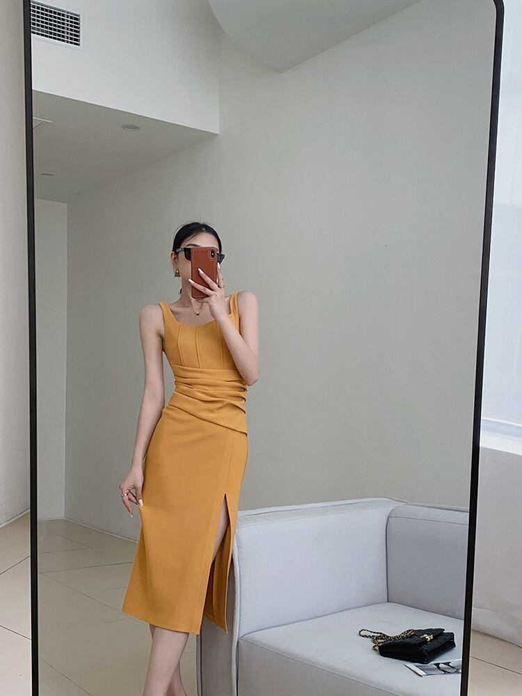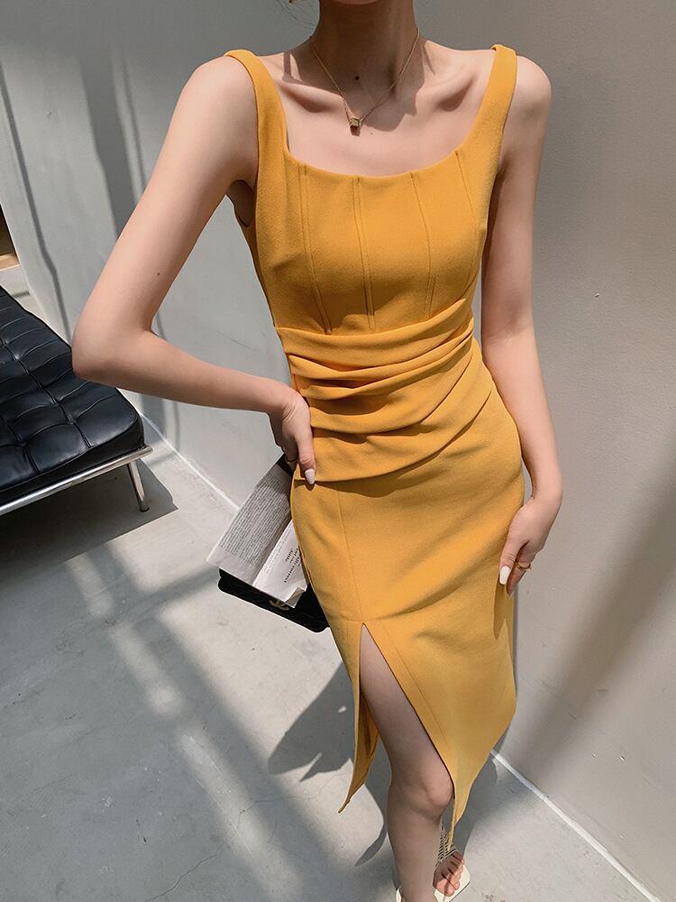 ベスト スリング ドレス レディース 夏 スリム スリム セクシー サイドスリット ミドル丈 スカート イエロー SM かわいい 大人可愛い きれいめ シンプル カジュアル 大人 上品 おしゃれ お洒落 大人可愛い 大人女子 春 夏 秋 10代 20代 30代 40代 レディース 女性用 女の子 学生 通学 デート お出かけ 女子会 お泊まり 休日 パーティー イベント 旅行 普段使い ファッション コーデ スタイル トレンド 流行 インスタ映え