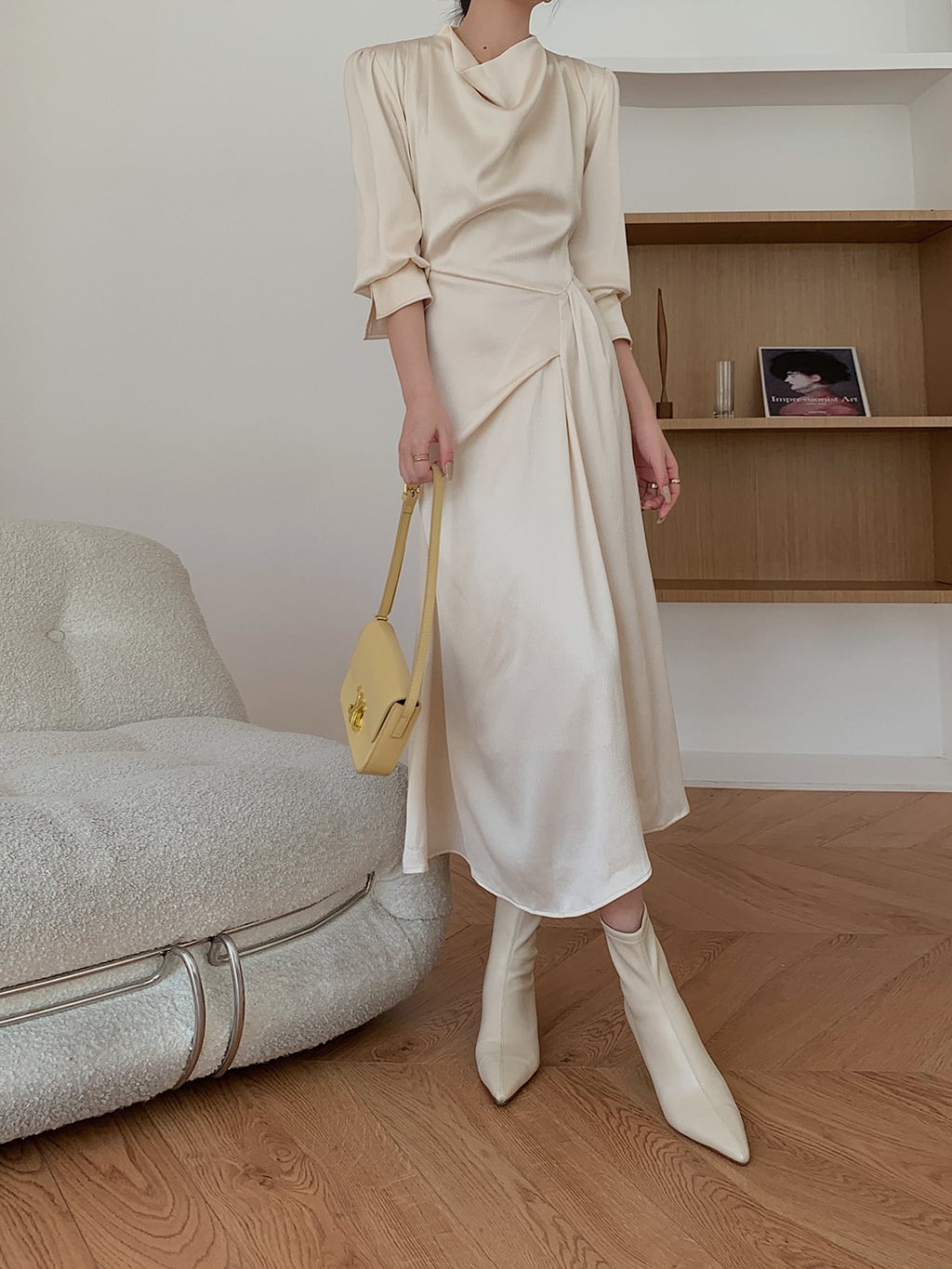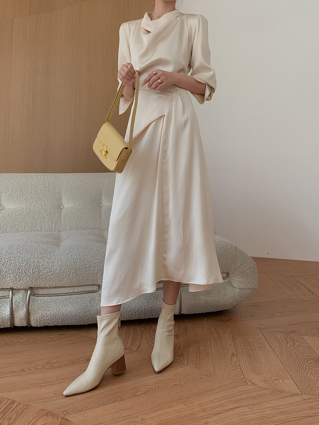 レディース ファッション カラースイング カラー 長袖 ドレス 女性 秋 デザイン ウエスト ミドル丈 スカート アプリコット SML かわいい 大人可愛い きれいめ シンプル カジュアル 大人 上品 おしゃれ お洒落 大人可愛い 大人女子 春 夏 秋 10代 20代 30代 40代 レディース 女性用 女の子 学生 通学 デート お出かけ 女子会 お泊まり 休日 パーティー イベント 旅行 普段使い ファッション コーデ スタイル トレンド 流行 インスタ映え | ameiro18