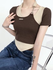 ショートスリーブ Tシャツ 女性 ホットガール サマー デザインセンス コントラスト カラー スリミング ショート トップ SML トップス 袖あり かわいい 大人可愛い きれいめ シンプル カジュアル 大人 上品 おしゃれ お洒落 大人可愛い 大人女子 キュート 春 夏 秋 10代 20代 30代 レディース 女性用 女の子 通勤 学生 通学 デート お出かけ 女子会 お泊まり 休日 パーティー イベント 旅行 普段使い ファッション コーデ スタイル インスタ映え | ameiro18
