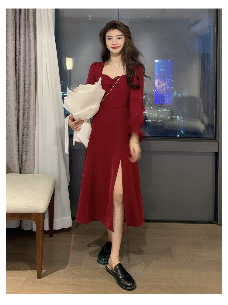 レディース ファッション 赤い ドレス 女性 秋 フレンチ レトロ スリット ロング スカート レッド ブラック SMLXL かわいい 大人可愛い きれいめ シンプル カジュアル 大人 上品 おしゃれ お洒落 大人可愛い 大人女子 春 夏 秋 10代 20代 30代 40代 レディース 女性用 女の子 学生 通学 デート お出かけ 女子会 お泊まり 休日 パーティー イベント 旅行 普段使い ファッション コーデ スタイル トレンド 流行 インスタ映え | ameiro18