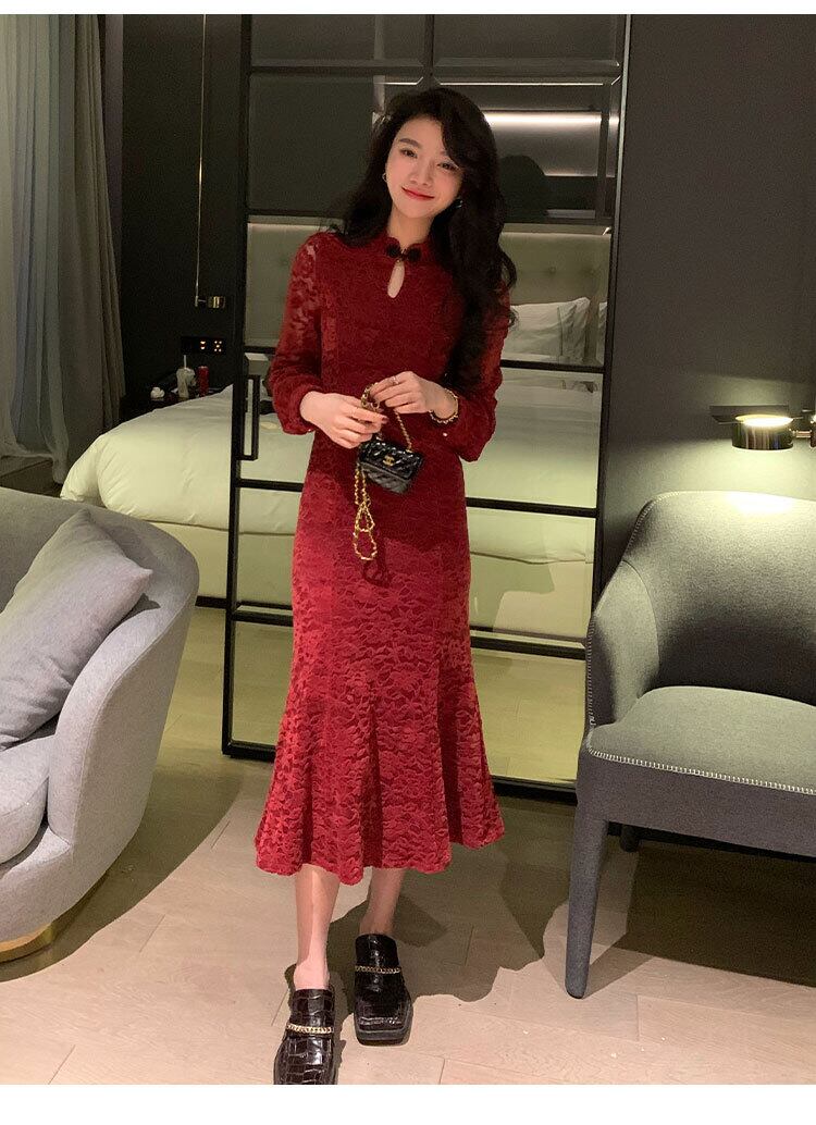 レディース ファッション 上品 レース ドレス秋 冬 ベルベット エレガント 赤い ドレス 女性 レッド ML かわいい 大人可愛い きれいめ シンプル カジュアル 大人 上品 おしゃれ お洒落 大人可愛い 大人女子 春 夏 秋 10代 20代 30代 40代 レディース 女性用 女の子 学生 通学 デート お出かけ 女子会 お泊まり 休日 パーティー イベント 旅行 普段使い ファッション コーデ スタイル トレンド 流行 インスタ映え | ameiro18