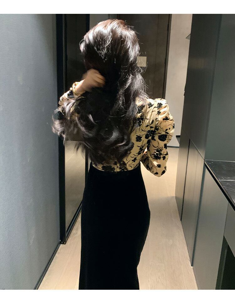 大人可愛いシックなデザインが魅力のドレスです。フレンチレトロ感溢れるデザインとベルベット素材が、秋冬のファッションにぴったり。シンプルでありながら、上品さやおしゃれさも兼ね備えています。