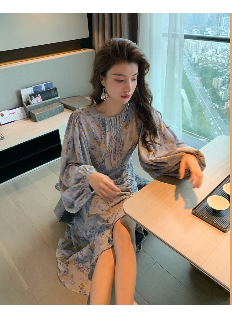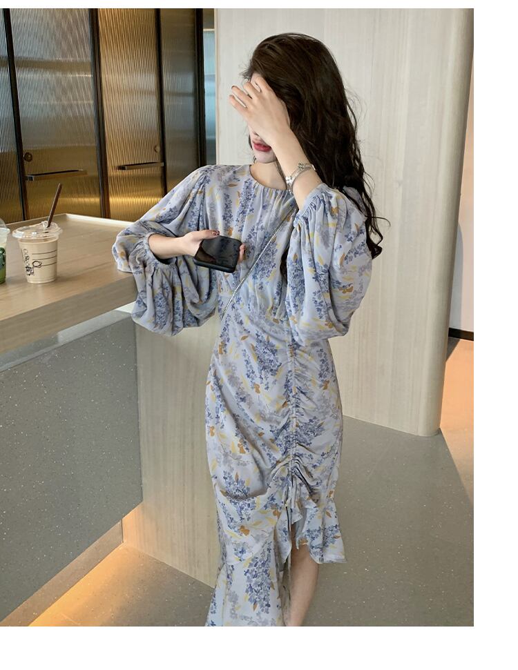 ラグジュアリー アドバンスト デザイン ランタン スリーブ マーメイド スカート フレンチ レトロ スリット ティー ブレイク 花柄 ドレス 女性 ブルー SML かわいい 大人可愛い きれいめ シンプル カジュアル 大人 上品 おしゃれ お洒落 大人可愛い 大人女子 春 夏 秋 10代 20代 30代 40代 レディース 女性用 女の子 学生 通学 デート お出かけ 女子会 お泊まり 休日 パーティー イベント 旅行 普段使い ファッション コーデ スタイル トレンド 流行 インスタ映え | ameiro18
