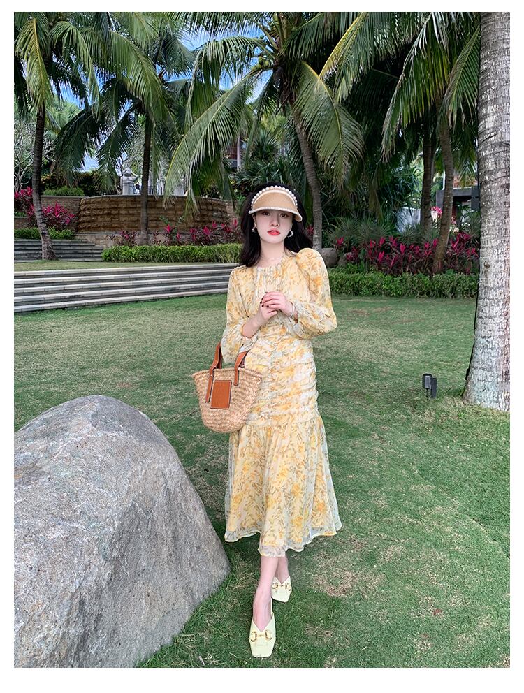 フレンチスタイル 花柄 ワンピース 秋 デザインセンス ナローウエスト スリム バッグ ヒップ マーメイド スカート イエロー SML かわいい 大人可愛い きれいめ シンプル カジュアル 大人 上品 おしゃれ お洒落 大人可愛い 大人女子 春 夏 秋 10代 20代 30代 40代 レディース 女性用 女の子 学生 通学 デート お出かけ 女子会 お泊まり 休日 パーティー イベント 旅行 普段使い ファッション コーデ スタイル トレンド 流行 インスタ映え | ameiro18
