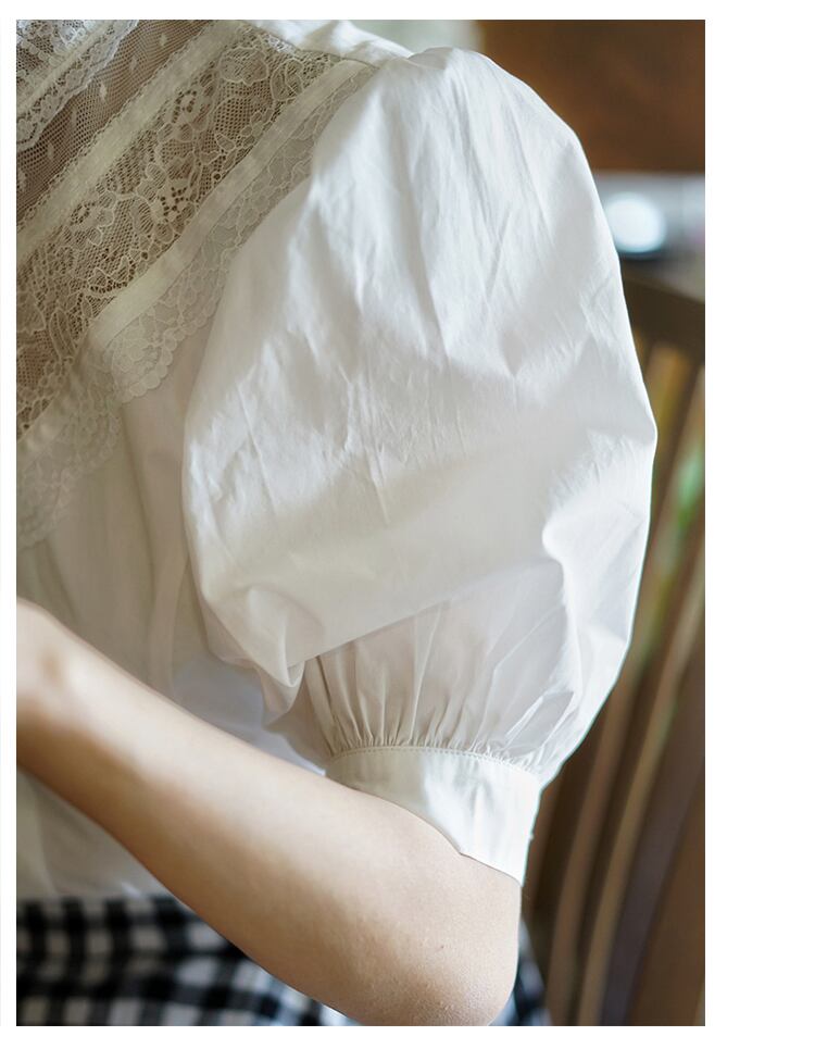 ヴィンテージ レトロ レース スプライシング トップ ハーフハイ カラー バブル スリーブ ホワイト シャツ ホワイト SML トップス 袖あり かわいい 大人可愛い きれいめ シンプル カジュアル 大人 上品 おしゃれ お洒落 大人可愛い 大人女子 キュート 春 夏 秋 10代 20代 30代 レディース 女性用 女の子 通勤 学生 通学 デート お出かけ 女子会 お泊まり 休日 パーティー イベント 旅行 普段使い ファッション コーデ スタイル インスタ映え | ameiro18