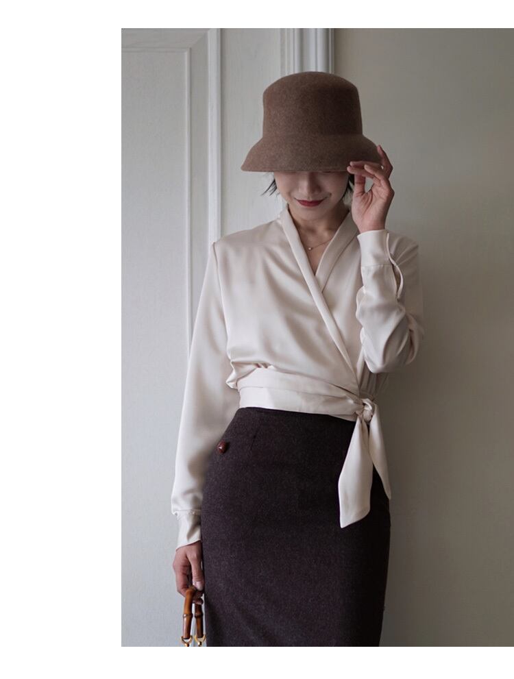 シルク ストラップ付き Vネック トップ レディース レトロ ハイウエスト 長袖 シャツ ホワイト ボトムス シャツ 春 ベージュ SM L トップス 袖あり かわいい 大人可愛い きれいめ シンプル カジュアル 大人 上品 おしゃれ お洒落 大人可愛い 大人女子 キュート 春 夏 秋 10代 20代 30代 レディース 女性用 女の子 通勤 学生 通学 デート お出かけ 女子会 お泊まり 休日 パーティー イベント 旅行 普段使い ファッション コーデ スタイル インスタ映え | ameiro18