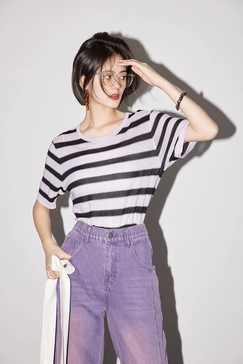 ストライプ T ニット 半袖 サマー ドレス ラウンドネック ファッション カジュアル 外国風 カラー コントラスト セクション ルーズ ニッチ トップ 服 トップス Tシャツ 袖あり 半袖 5分袖 五分袖 ラウンドネック かわいい 大人可愛い シンプル カジュアル 大人 上品 おしゃれ お洒落 春 夏 10代 20代 デート お出かけ 公園デビュー 休日 着回し 普段使い オルチャン ファッション コーデ スタイル S M 白 ホワイト ピンク | ameiro18