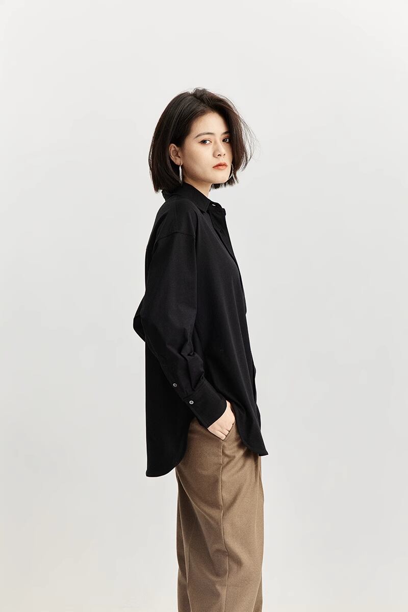 シンプル ハイエンド ファッション 綿 ニット生地 長袖 シャツ トップス シャツ 白トップス 袖あり 長袖 襟付き 綿 きれいめ シンプル カジュアル 大人 おしゃれ お洒落 こなれ感 ラフ 無地 春 秋 10代 20代 30代 40代 50代 60代 レディース 学生 通学 デート お出かけ 公園デビュー 女子会 休日 着回し 普段使い ファッション コーデ スタイル サイズ S M L 色展開 白 ホワイト 黒 ブラック | ameiro18
