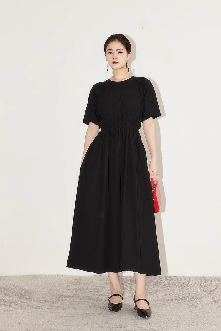 ドレス スリム ウエスト スカート スリム ラウンドネック 半袖 夏 Aライン ロング ドレス ワンピース ロング ロング丈 袖あり 半袖 5分袖 五分袖 パフスリーブ ラウンドネック 襟なし 大人可愛い きれいめ シンプル カジュアル 大人 上品 おしゃれ お洒落 大人女子 こなれ感 ラフ 無地 春 夏 秋 10代 20代 30代 40代 50代 60代 レディース デート お出かけ 公園デビュー 女子会 お泊まり 休日 パーティー 普段使い ファッション コーデ スタイル 楽ちん S Mブラック | ameiro18
