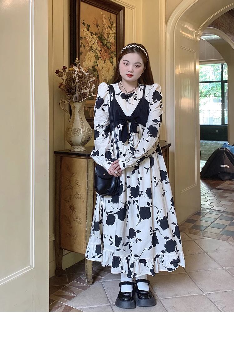 大きいサイズ クール 花柄 スカート ワンピース 個性的 ワンピース ロング ロング丈 袖あり 長袖 襟なし 大人可愛い 大人 上品 おしゃれ お洒落 ラブリー キュート ガーリー 花柄 小花柄 フラワー 春 夏 秋 冬 オールシーズン 10代 20代 レディース デート お出かけ 公園デビュー 休日 イベント リゾート 海 普段使い 韓国 韓国系 オルチャン ファッション コーデ スタイル サイズ XL 2XL 3XL 色展開 | ameiro18