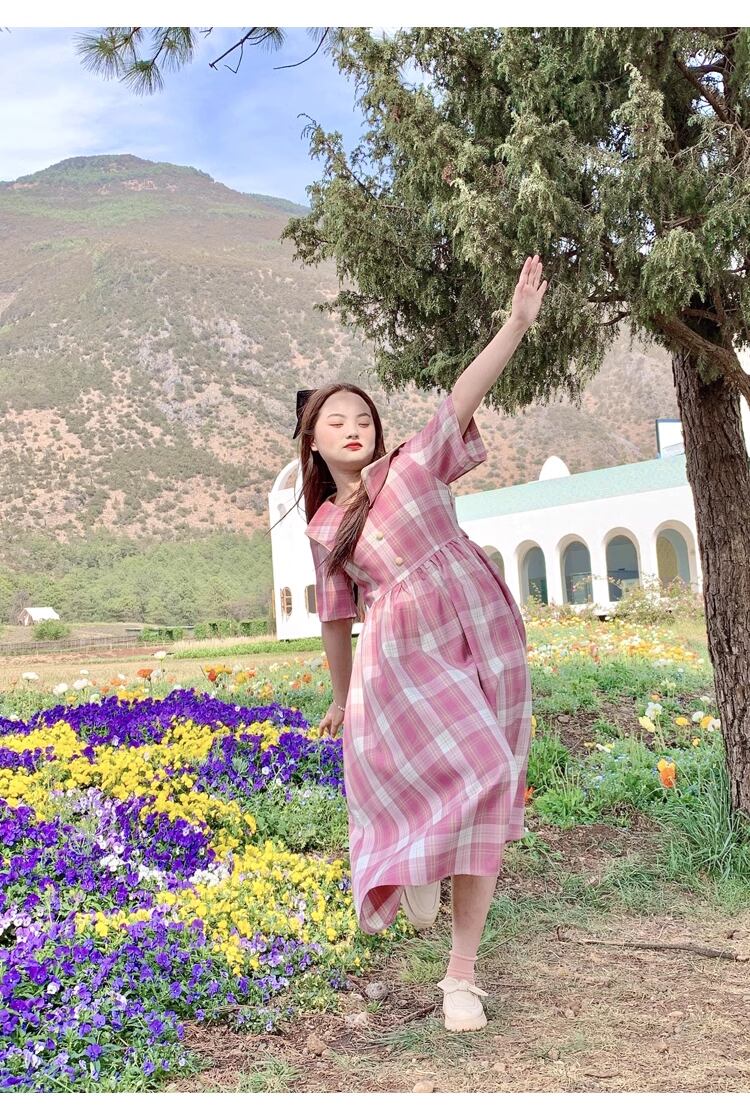 大きいサイズ 初恋 ガール ピンク チェック柄 スカート カラー ドレス 学生風 個性的 ワンピース ロング ロング丈 袖あり 5分袖 五分袖 Vネック 襟なし 大人可愛い シンプル カジュアル おしゃれ お洒落 ラブリー キュート チェック柄 春 夏 10代 20代 30代 レディース デート お出かけ 公園デビュー 女子会 休日 パーティー イベント リゾート 韓国 韓国系 オルチャン ファッション コーデ スタイル モテ サイズ XL 2XL 3XL 色展開 ピンク | ameiro18