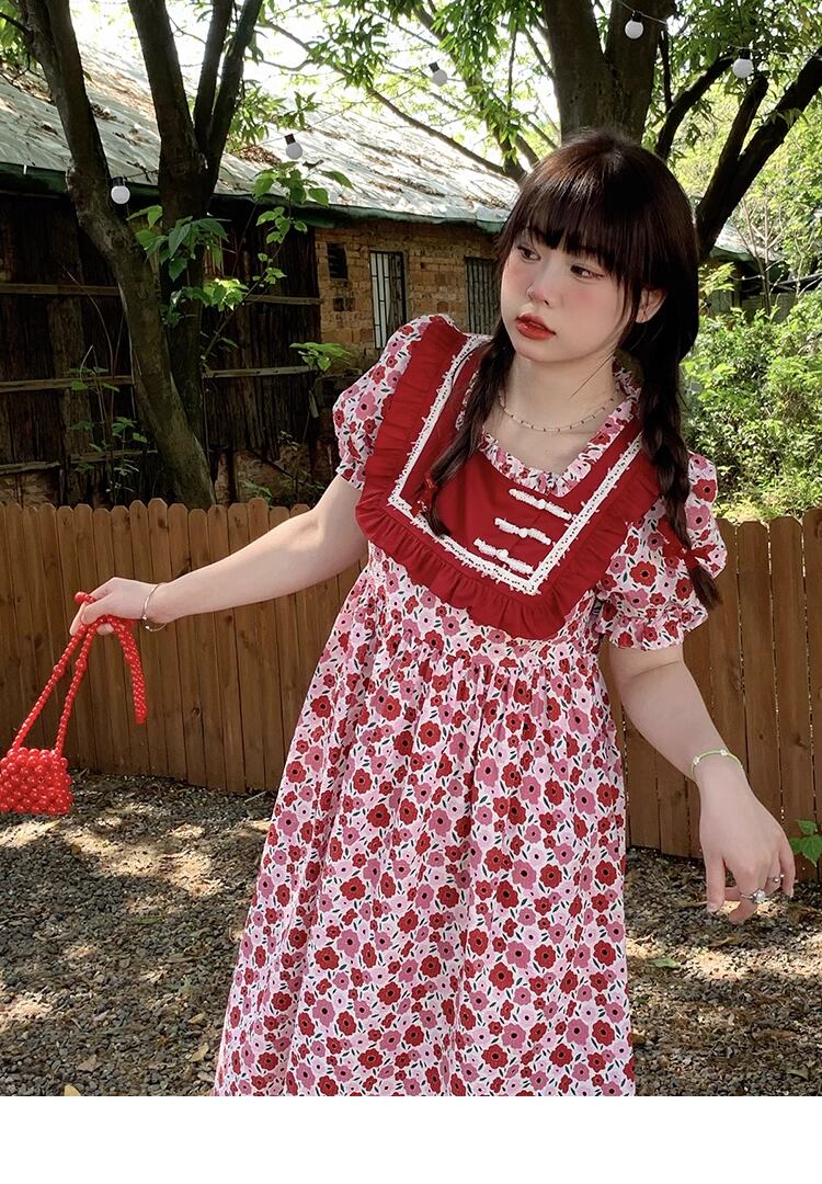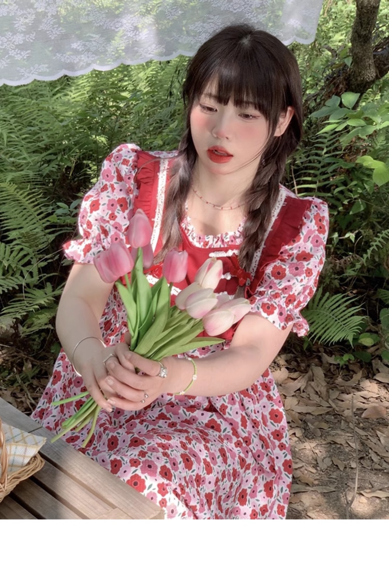 レッド クラッシュ フラワー ドレス 大きいサイズ スクエアネック ウエスト レトロ 個性的 ワンピース 膝下 袖あり 半袖 パフスリーブ スクエアネック 襟なし かわいい 大人可愛い おしゃれ お洒落 ラブリー キュート ガーリー 柄 花柄 小花柄 フラワー 春 夏 10代 20代 30代 レディース デート お出かけ 公園デビュー 女子会 休日 オルチャン ファッション コーデ スタイル モテ トレンド インスタ映え サイズ XL 2XL 3XL 色展開 赤 レッド | ameiro18