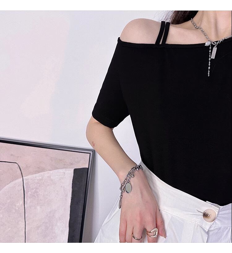 黒 レトロ tシャツ 女性 夏 シック オフショルダー 半袖 鎖骨 ワンショルダー トップ 個性的 トップス 袖あり 半袖 襟なし 大人可愛い きれいめ シンプル 大人 上品 おしゃれ お洒落 かっこいい こなれ感 無地 春 夏 秋 10代 20代 30代 40代 50代 60代 レディース デート お出かけ 公園デビュー 女子会 お泊まり 休日 イベント リゾート オルチャン ファッション コーデ スタイル モテ サイズ S M L 色展開 黒 ブラック | ameiro18