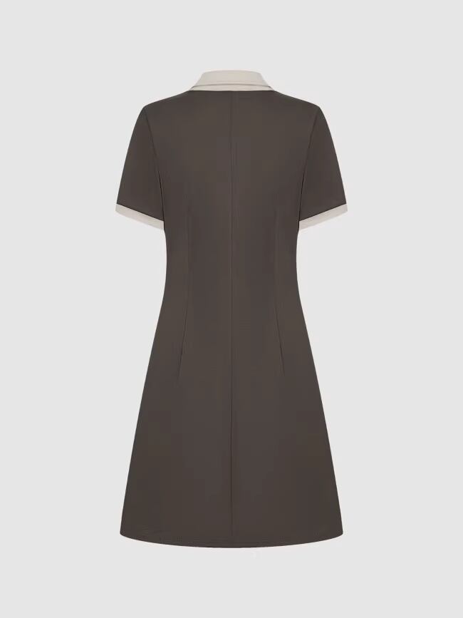 夏 婦人服 アメリカン カレッジ スタイル レター プリント プリーツ ポロ ドレス 学生風 個性的 ワンピース ミニ ミニ丈 ショート ショート丈 袖あり 半袖 Vネック 襟付き シンプル 大人 上品 おしゃれ お洒落 かっこいい メンズライク 個性的 クール モード系 柄 夏 10代 20代 30代 40代 50代 60代 レディース デート お出かけ 公園デビュー 女子会 お泊まり イベント 韓国 韓国系 オルチャン XS S M L XL 色展開 茶色 ブラウン 灰色 グレー ネイビー | ameiro18