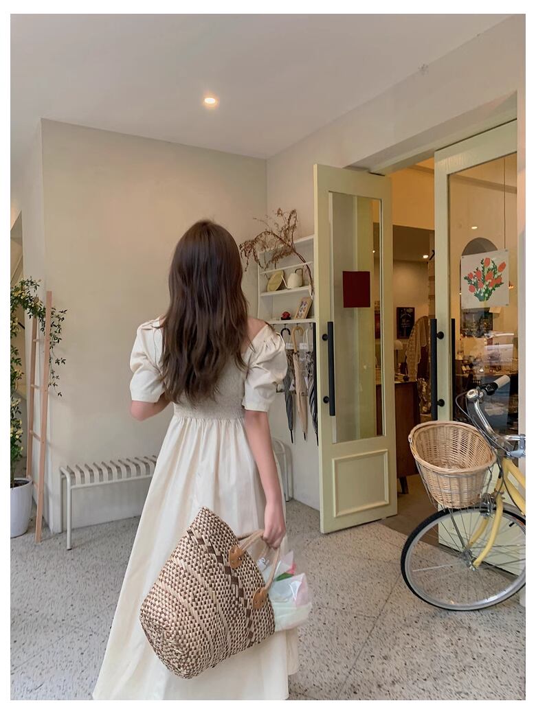 韓国スタイルの夏のワンピースドレス。Vネックとフェミニンなプリンセススリーブが、大人可愛い雰囲気を演出します。ハイウエストのデザインでスタイルアップ効果も期待できます。おしゃれで上品な着こなしを楽しめる、ロング丈のワンピースです。 5分袖の袖ありタイプなので、肌を見えすぎずに華奢な印象に。カラーバリエーションも豊富で、あなたのスタイルに合わせてお選びいただけます。 さらに、素材もこだわりました。涼しげな薄手の生地で、快適な着心地を実現しました。 春夏に活躍する一枚ですので、デートやお出かけ、女子会や公園デビューなど様々なシーンで活躍してくれます。2020年マストバイアイテムとして、ぜひお手元に取り入れてください。