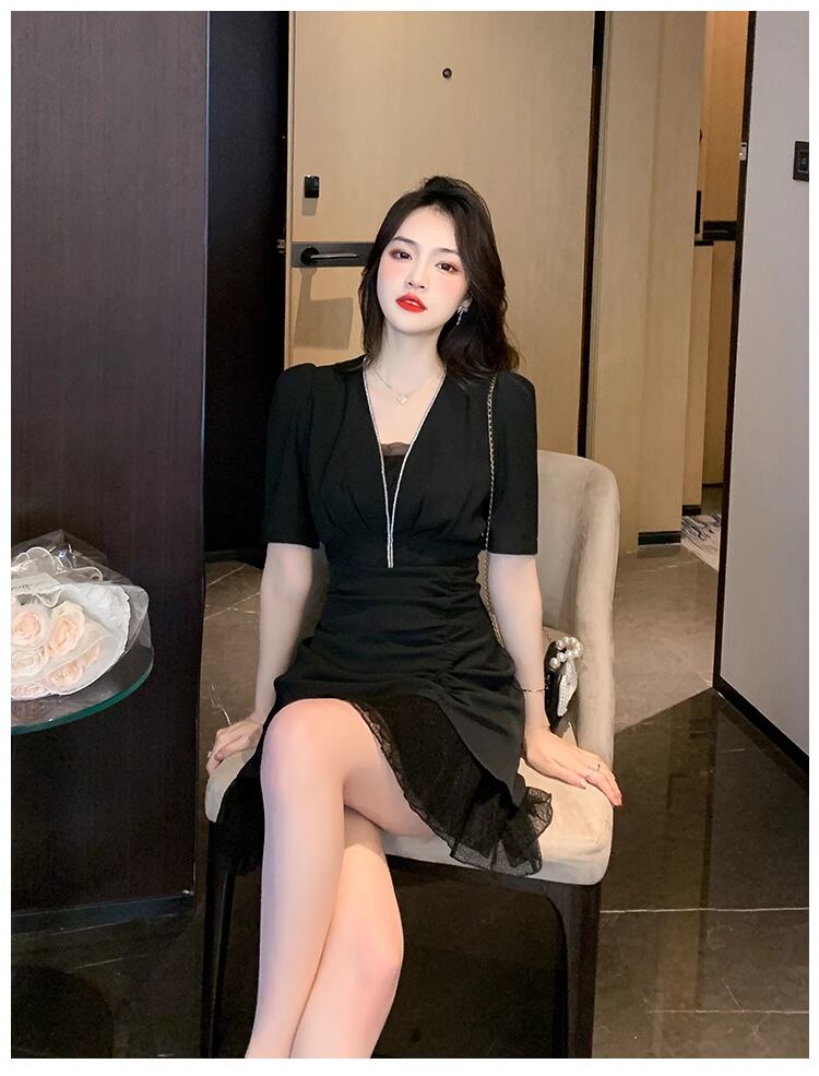夏 デザイン センス ニッチ ウエスト プリーツ スリム ドレス スリム スカート 個性的 ワンピース ミニ ミニ丈 ショート ショート丈 袖あり 5分袖 五分袖 Vネック 襟なし 大人 上品 おしゃれ お洒落 かっこいい スポーティー 無地 春 夏 10代 20代 30代 40代 50代 60代 レディース デート お出かけ 公園デビュー 女子会 休日 韓国 韓国系 オルチャン ファッション コーデ スタイル モテ サイズ S M L XL 2XL 色展開 黒 ブラック | ameiro18